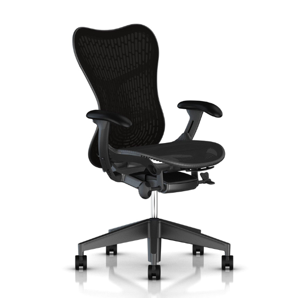 Precisely because of the more mobile way people work today, the designers of the Mirra original chair found there was still value in the concept of a highly individualised personal chair. While the designers retained the athletic attitude and intuitive adjustments of the original, they advanced the material and form of this idea in virtually every aspect of Mirra 2.